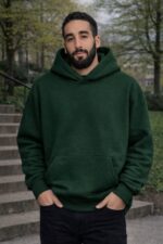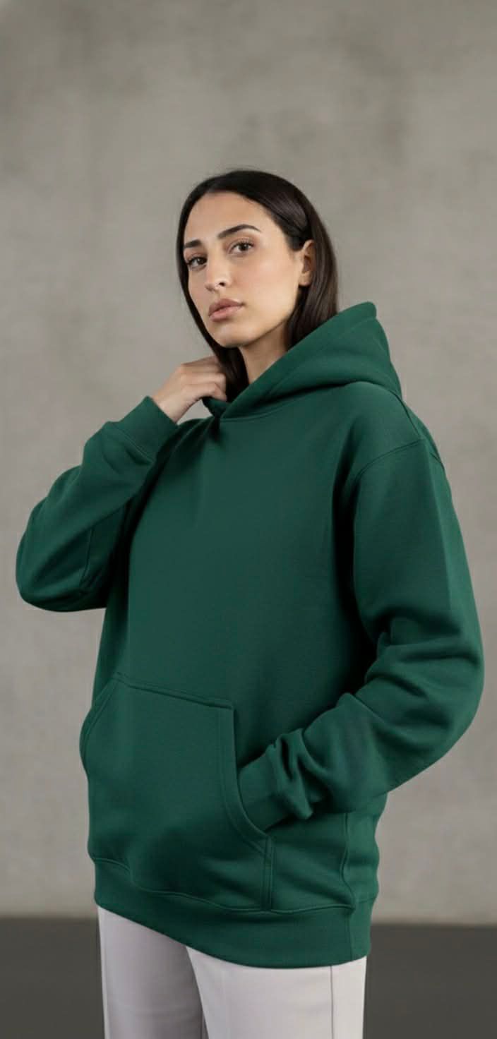 هودي أوفر سايز باللون الزيتي، مصنوع من قطن ملتن إسفنجي ناعم، مريح في اللبس ومناسب للاستخدام اليومي. معالج ضد الوبر والانكماش للحفاظ على الشكل والجودة.